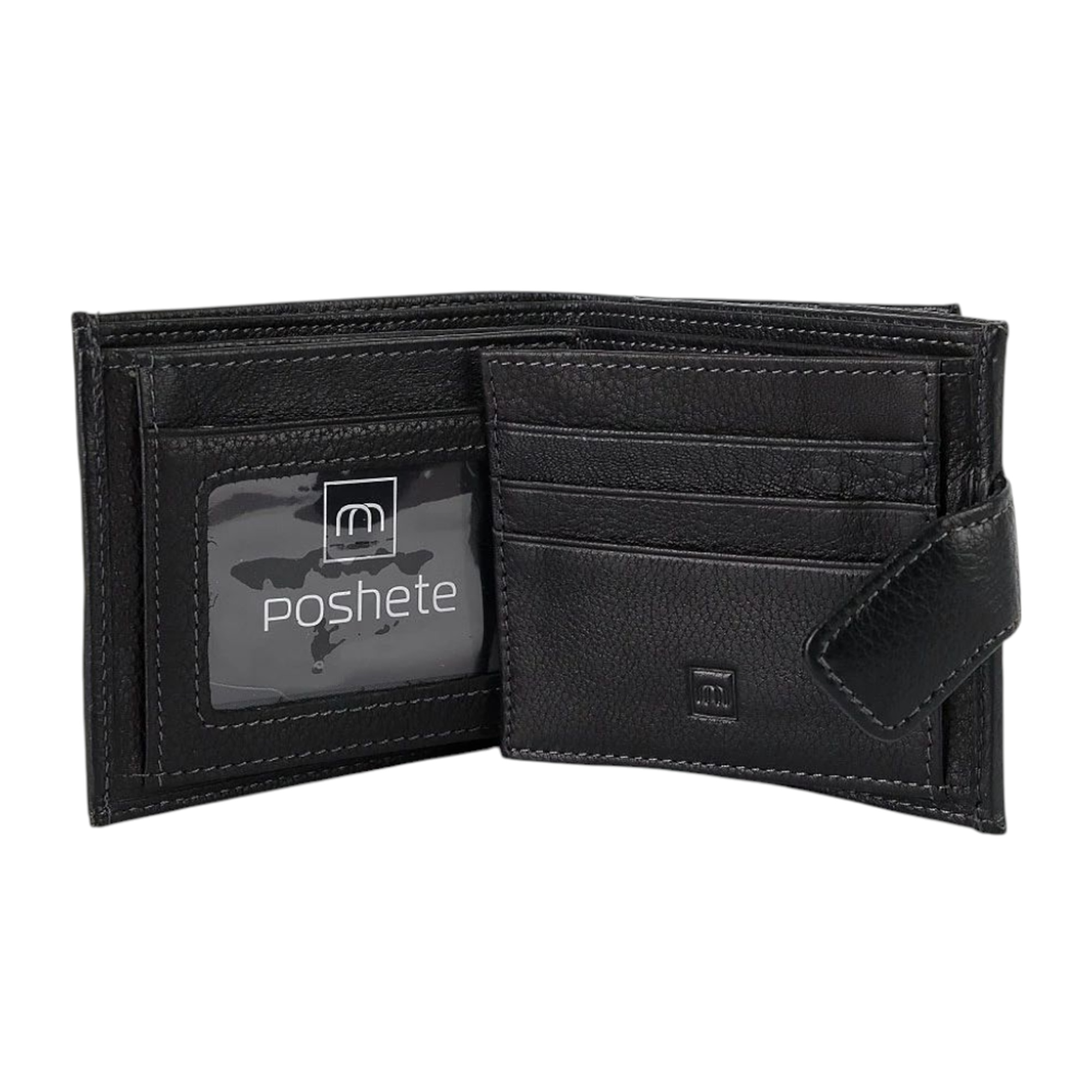 Мужской кошелёк Poshete выполнен из натуральной кожи с текстильной подкладкой. Внутри отделения для купюр, пластиковых карт и карман-окошко. Кошелёк компактный, удобный в использовании, складывается пополам и закрывается ремешком на кнопку.