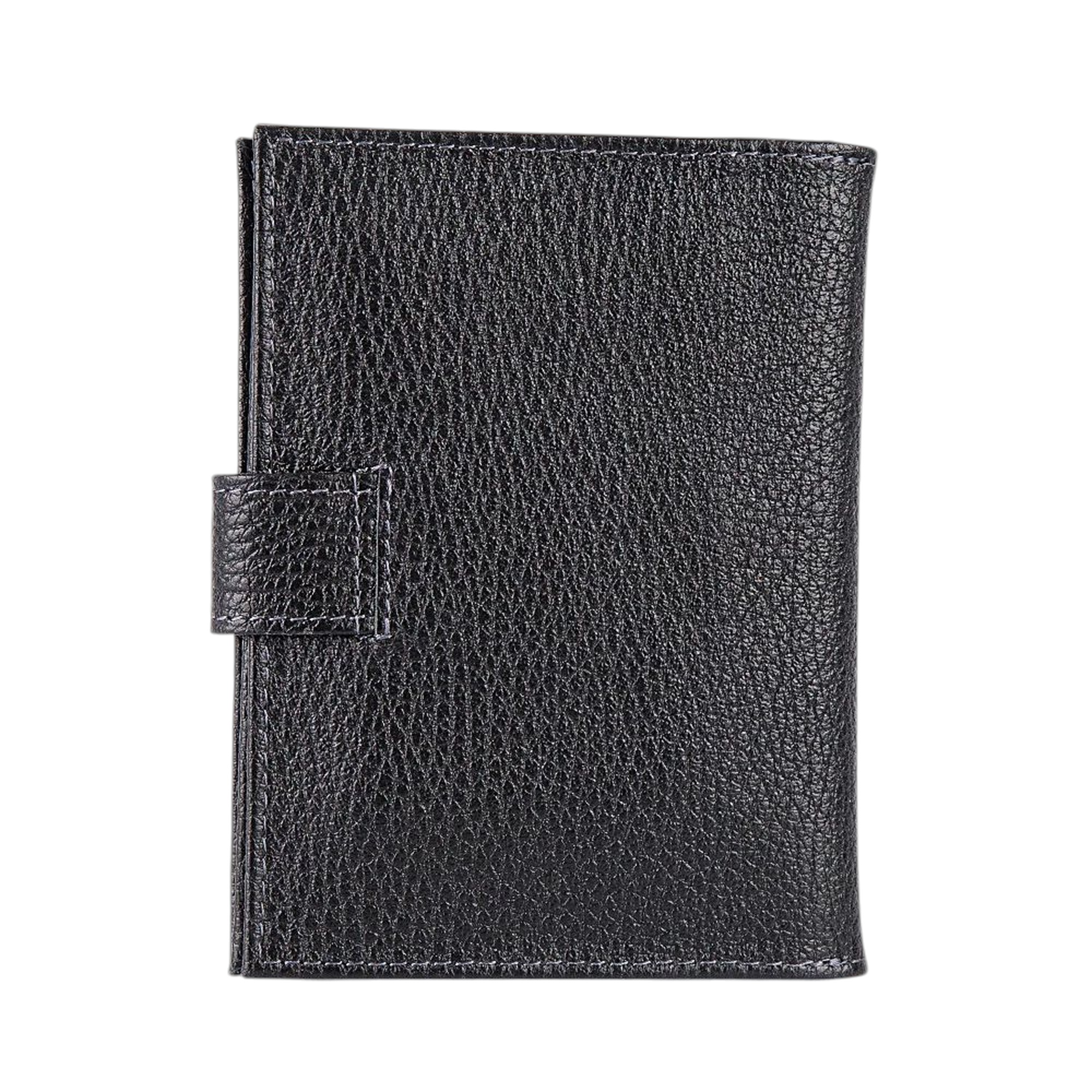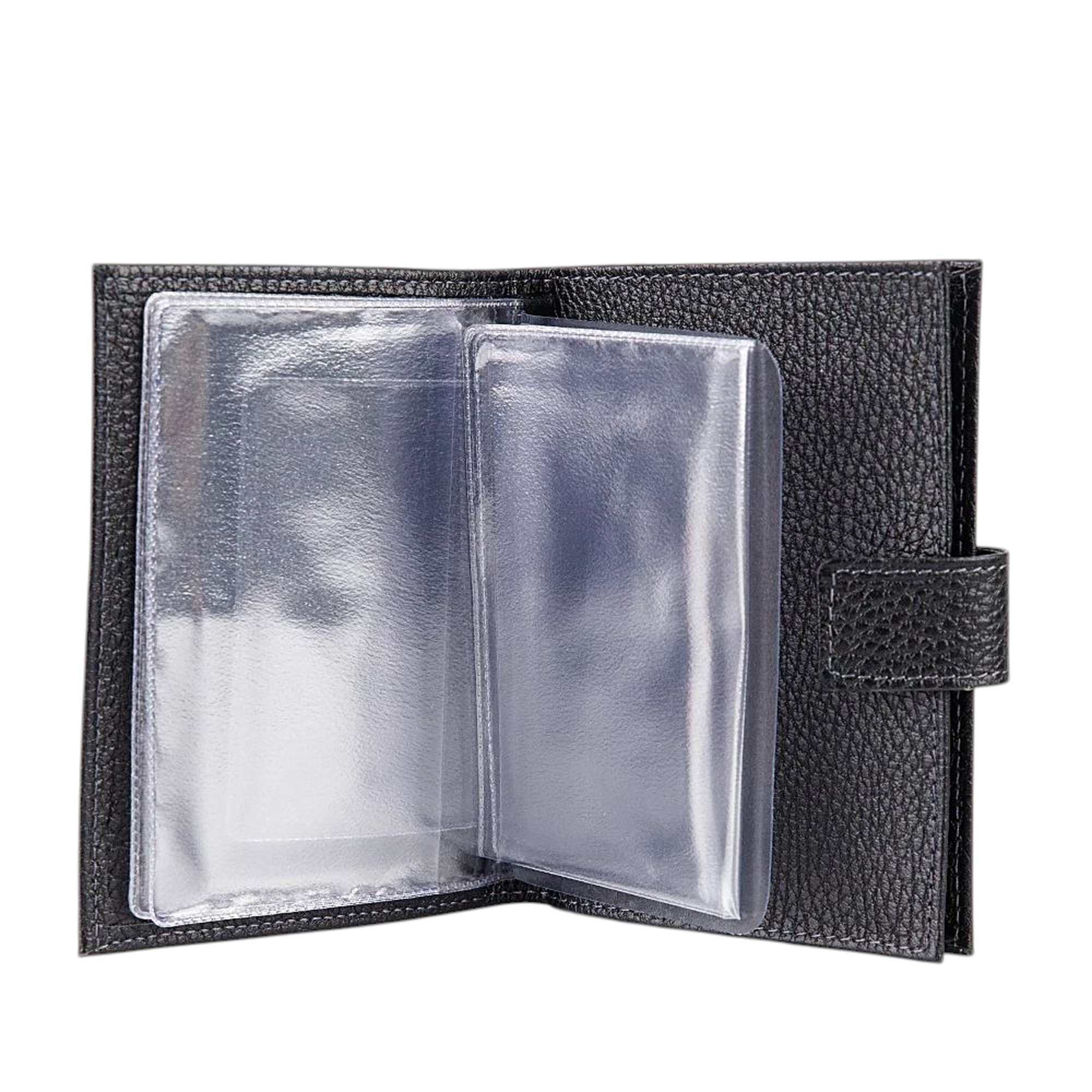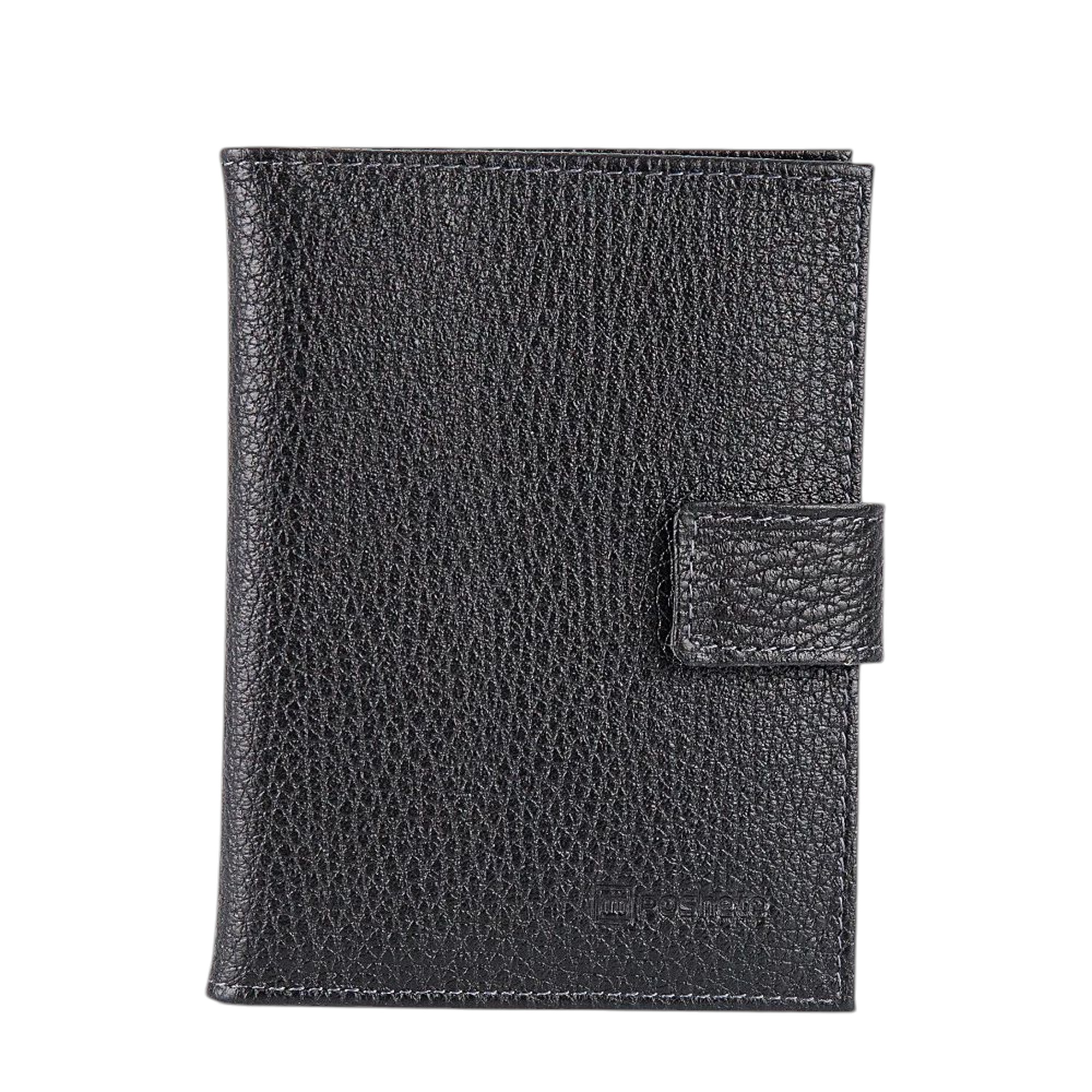 Классическая обложка для паспорта и автодокументов от бренда Poshete. Аксессуар черного цвета из натуральной мягкой кожи. Внутри отделение для паспорта и разноразмерные отделения для автодокументов. Модель с застежкой на металлическую кнопку.