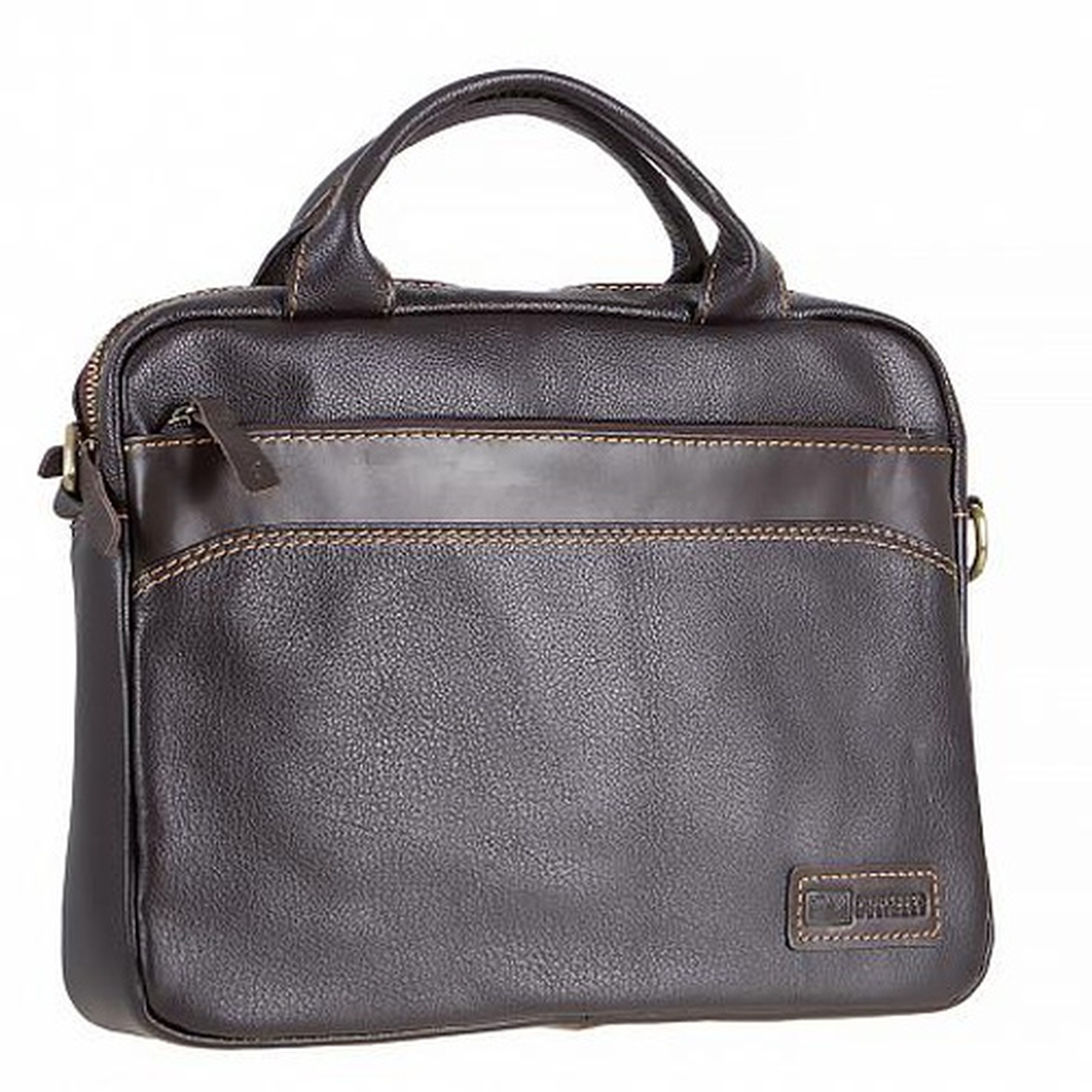 Стильная компактная сумка от бренда Francesco Molinary выполнена из натуральной крупнозернистой кожи коричневого цвета.