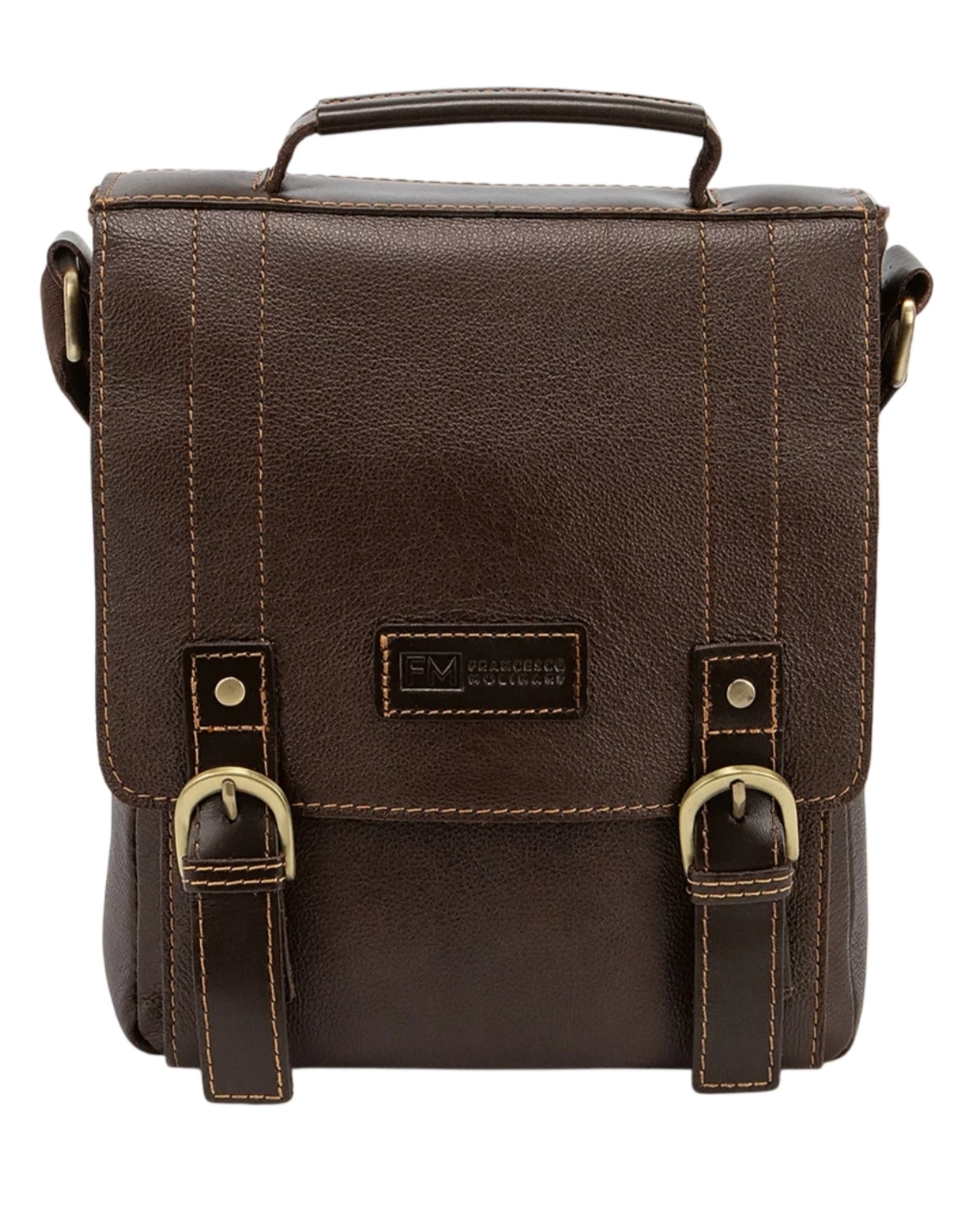 Стильная сумка через плечо от бренда Francesco Molinary выполнена из натуральной кожи коричневого цвета.