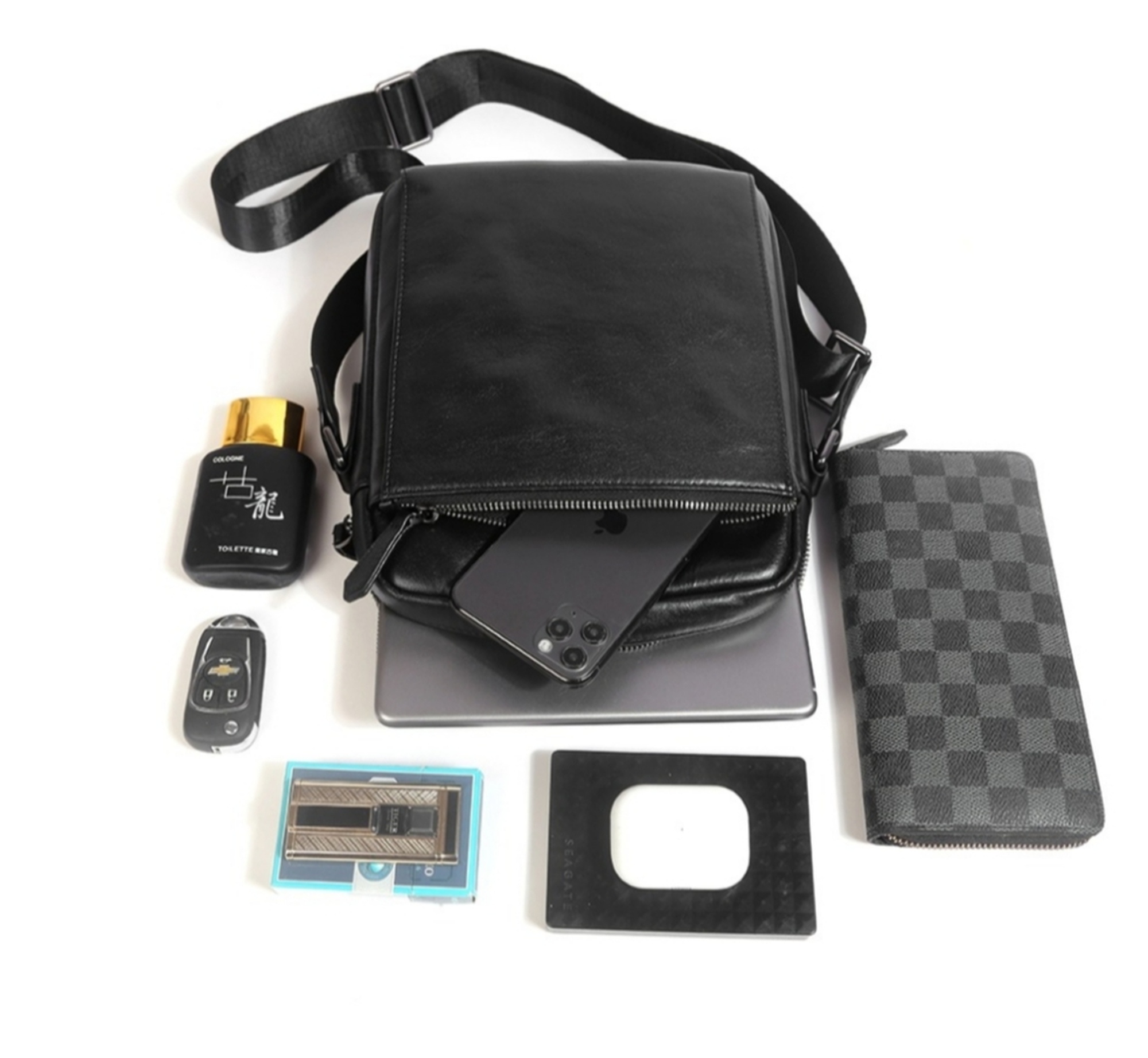 Классическая мужская сумка на плечо. Выполнена из натуральной гладкой кожи.