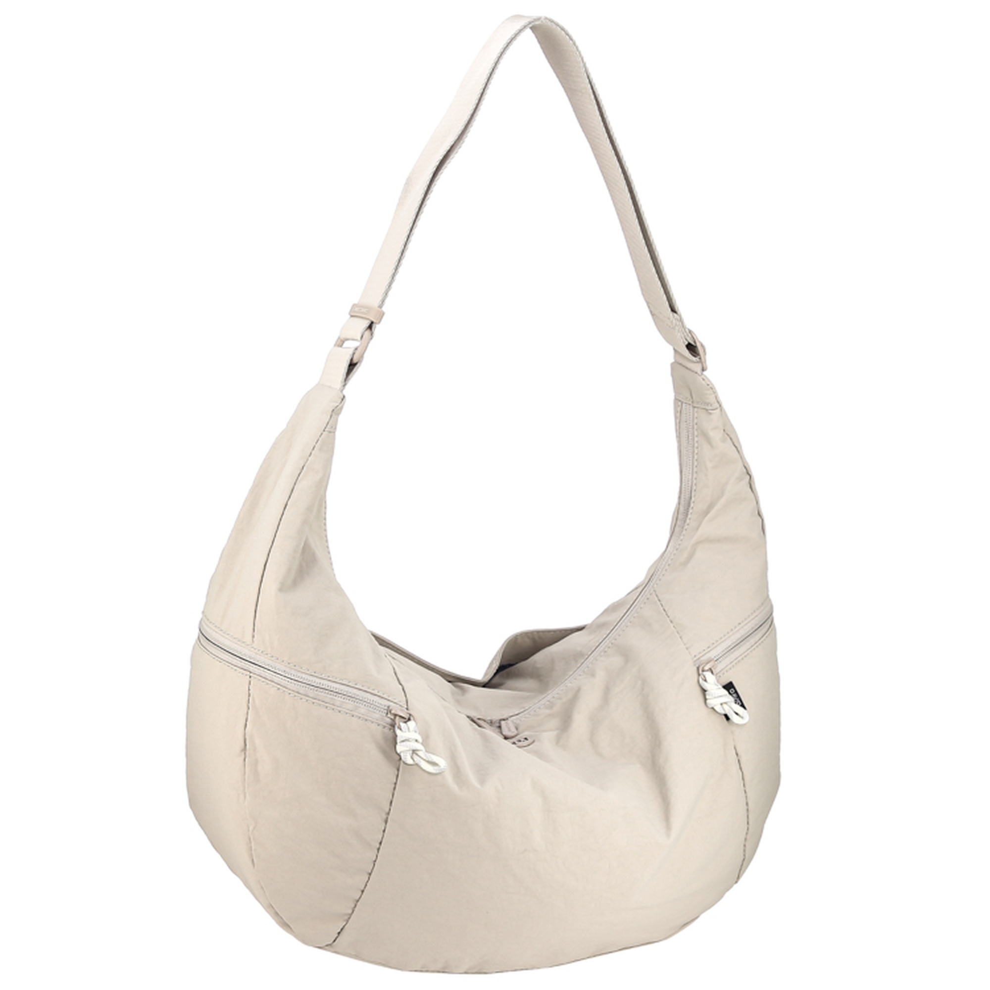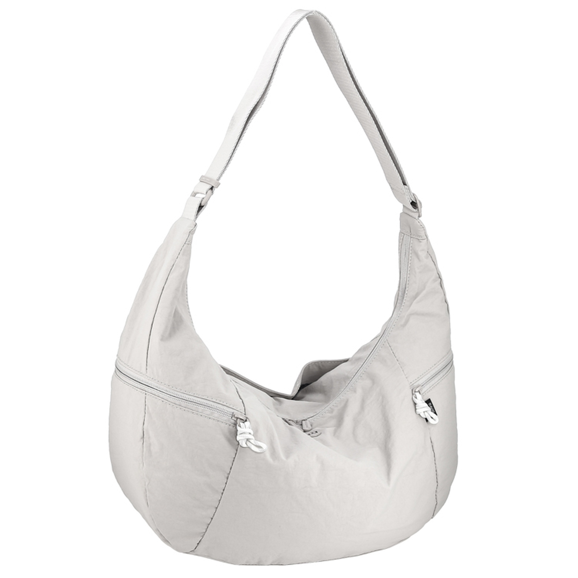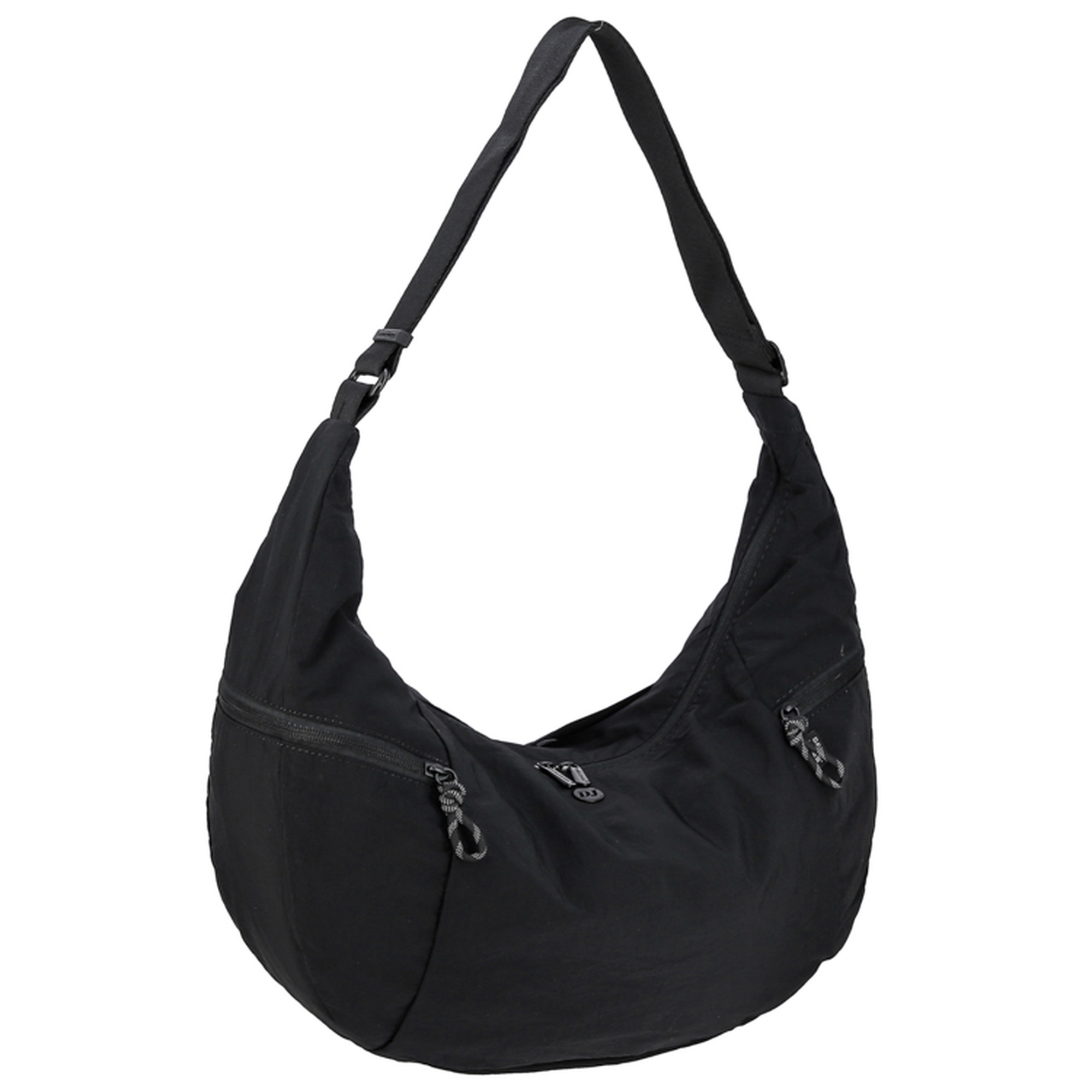 Женская сумка на длинном регулируемом ремне на плечо. Материал верха - нейлон. Материал подкладки - полиэстер. Одно отделение на молнии. Внутри: два кармана для мелочей на передней стенке и карман на молнии на задней стенке. Снаружи: карман на магнитной кнопке сзади, карманы на молниях по бокам. Цвет фурнитуры - под цвет материала.
