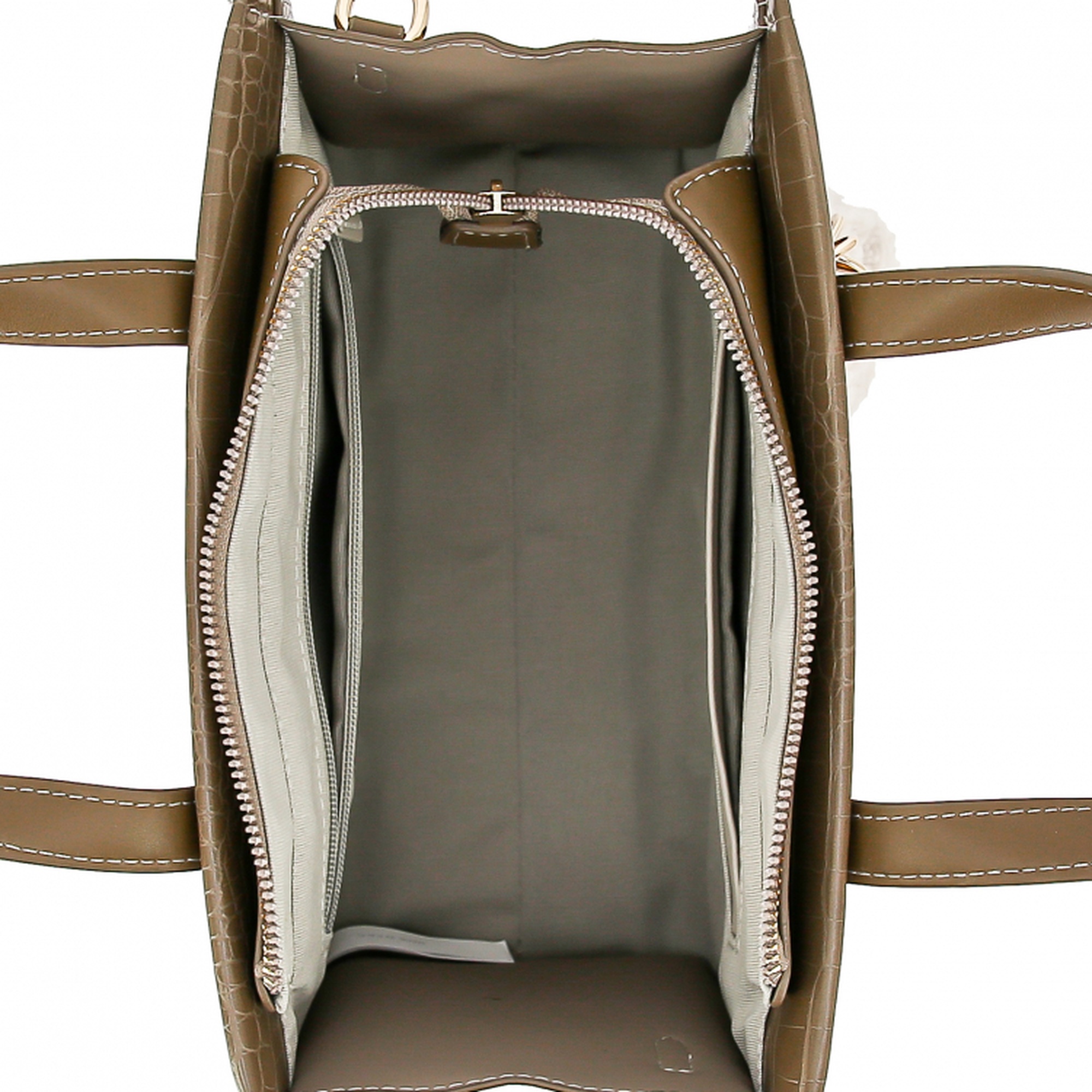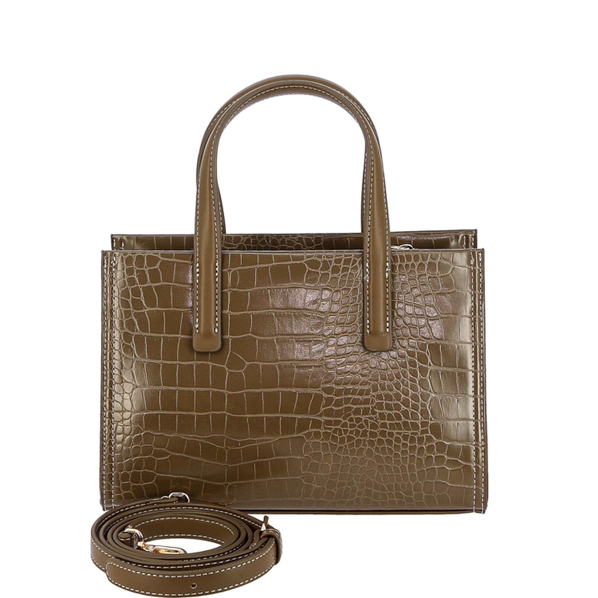 Стильная женская сумка с двумя ручками и регулируемым ремнем на плечо.