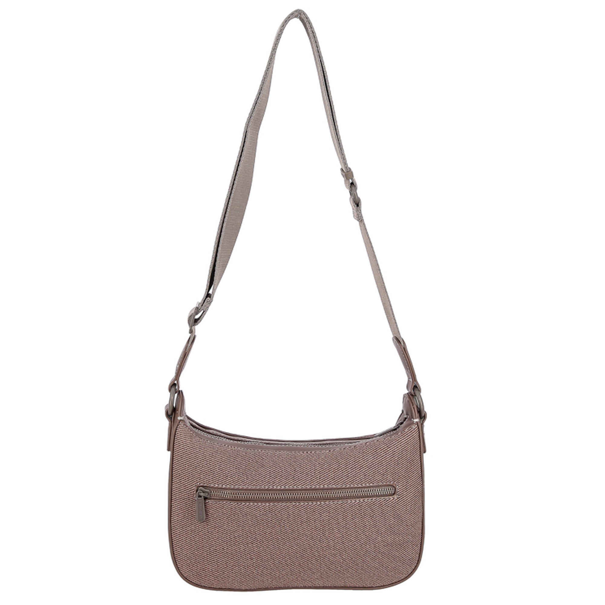 Внутри: карман для мелочей на передней стенке и карман на молнии на задней стенке. Снаружи: карман на молнии сзади. Цвет фурнитуры - под цвет материала